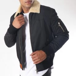 Budget 💯 Bomber Col Mouton Versmold Noir de Bombers Original ✔️
