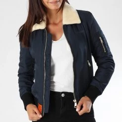 Grosses soldes 🎁 Bomber Femme Col Mouton Barcelone Bleu Marine de Bombers Original 👍