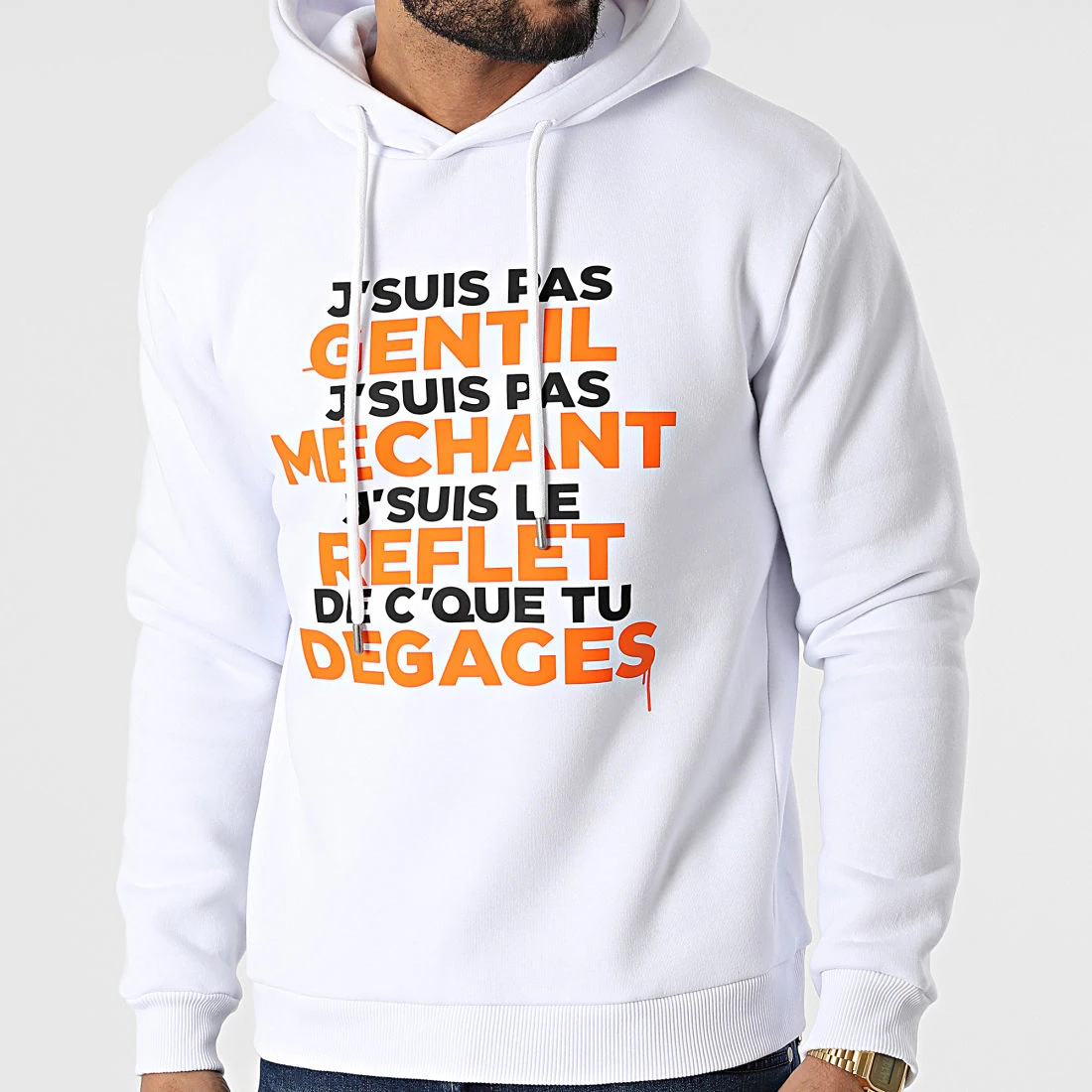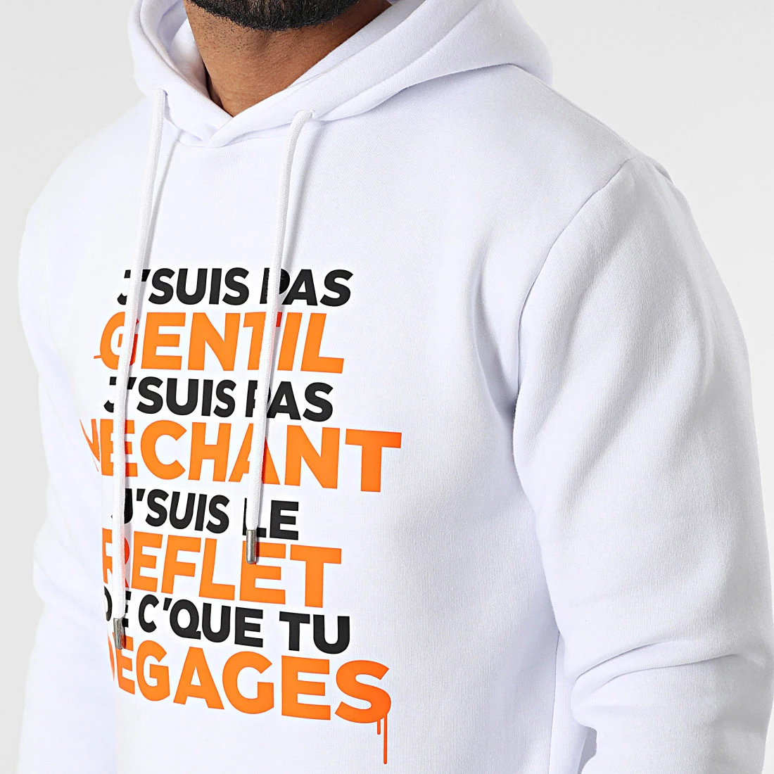 Sortie 🛒 Sweat Capuche Gentil Méchant Blanc Orange de Y et W 🤩
