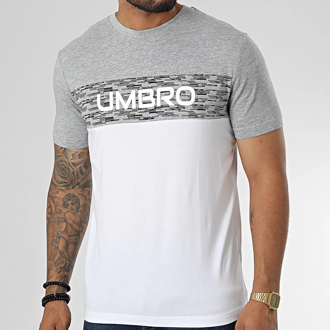 Promo 🔔 Tee 👕 Shirt 908560-60 Blanc Gris Chiné de Umbro 😀