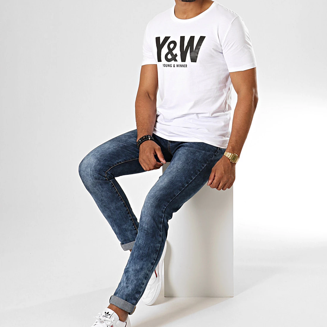 Remise 🔔 Tee 👚 Shirt Logo Blanc Noir de Y et W ✔️